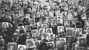 Nos miran en silencio, probablemente preguntándose cómo unos pocos todavía seguimos hablando del at3ntado. Año tras año se repite el mismo ritual: una lista de nombres, un “presente” por cada uno de los asesinados, unas velas encendidas, una canción emotiva, el político de turno que se compromete con encontrar la verdad, testimonios de un dolor inacabable y palabras de reclamo y estupor por la siempre ausente justicia.